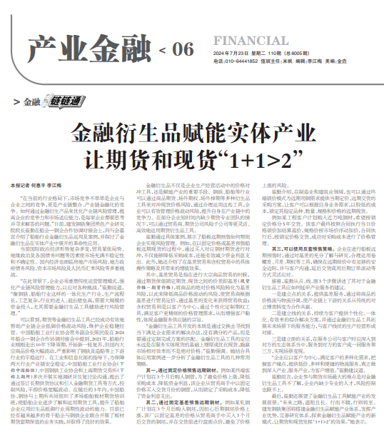 中国冶金报 | 金融衍生品赋能实体产业让期货和现货“1+1>2